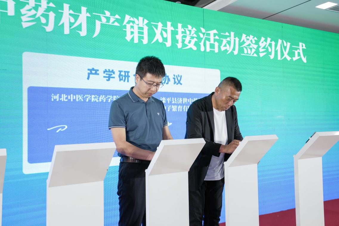 活動(dòng)簽約儀式上,8家河北中藥材種植生產(chǎn)企業(yè)與來自北京、安徽等地的采購商進(jìn)行了現(xiàn)場簽約,簽約意向金額1.1億元。隆化縣農(nóng)業(yè)農(nóng)村局、平泉市農(nóng)業(yè)農(nóng)村局與以嶺藥業(yè)簽訂戰(zhàn)略合作框架協(xié)議,圍繞中藥材采購、基地規(guī)范化種植、加工、倉儲(chǔ)等方面展開合作。灤平縣濟(jì)世中藥材種子繁育有限公司與河北中醫(yī)學(xué)院藥學(xué)院簽訂產(chǎn)學(xué)研合作協(xié)議,就良種選育、科研成果轉(zhuǎn)化等方面達(dá)成合作意向。